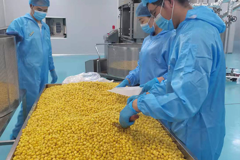 公司采用真空冷冻干燥(FD)和真空低温干燥(VF)工艺,开发出冻干银杏、银杏罐头、休闲银杏果、银杏夹心海苔等10余种健康休闲食品。